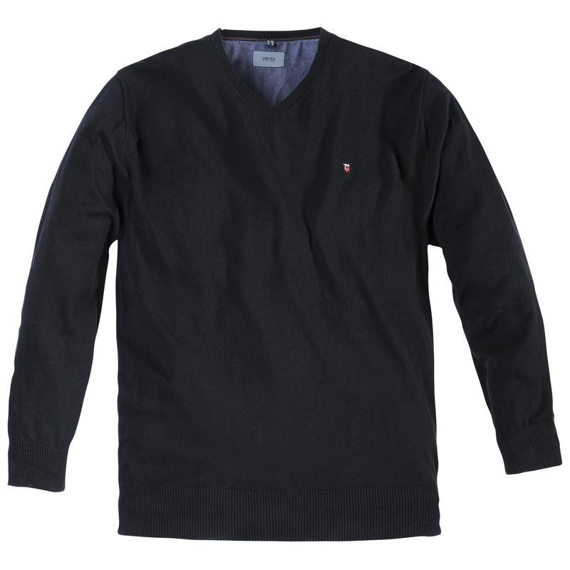 Pull grande taille homme en jersey fin pur coton. Col en V. Bord côtes poignets et base. Logo poitrine. Que l’on soit casual ou plus chic, chacun y trouvera son compte. Un basique essentiel du dressing ! Belle qualité. 100% coton.