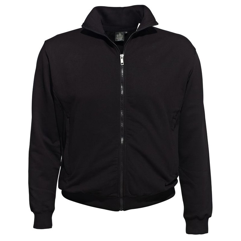Veste grande taille homme zippée sur toute la hauteur. Manches longues. Finitions bord côtes et poignets et base. Poches latérales. Broderie ton sur ton sur la manche gauche. 100% coton. Un produit de haute qualité (270 g / m²) avec un grand confort. Existe en marine.