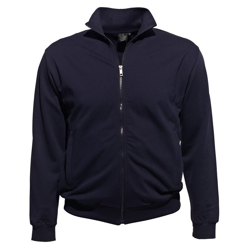 Veste grande taille homme zippée sur toute la hauteur. Manches longues. Finitions bord côtes et poignets et base. Poches latérales. Broderie ton sur ton sur la manche gauche. 100% coton. Un produit de haute qualité (270 g / m²) avec un grand confort.