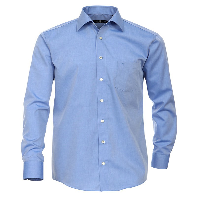 Chemise grande taille homme. Col Kent boutonné. Manches longues réglables. 1 poche poitrine avec broderie. Plis d'aisance. Base arrondie. Très confortable au porter. Repassage superflu. 100% coton.