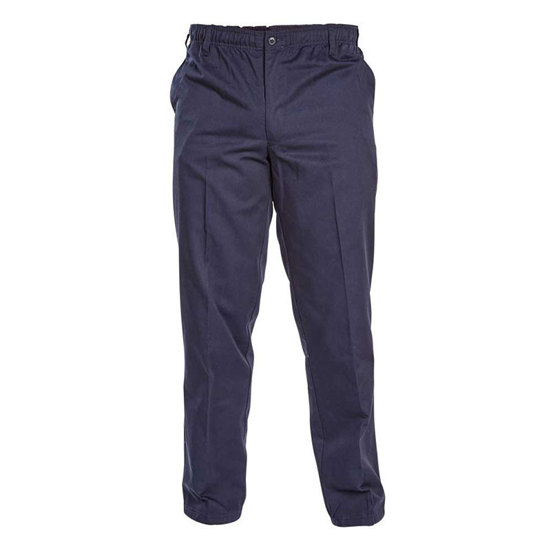 Pantalon grande taille homme fermé par un bouton. Ceinture extérieure à passants et entièrement élastique. Braguette glissière. 2 poches italiennes devant et 2 poches passepoilées derrière. Le pantalon à mettre tous les jours pour son confort. Séchage rapide. 80% polyester 20% coton.